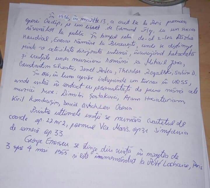 Urmăriţi documentarul de mai jos, apoi realizaţi un referat de aproximativ 2 pagini cu titlul GEORGE ENESCU, UN GENIU AL MUZICII ROMÂNEŞTI !