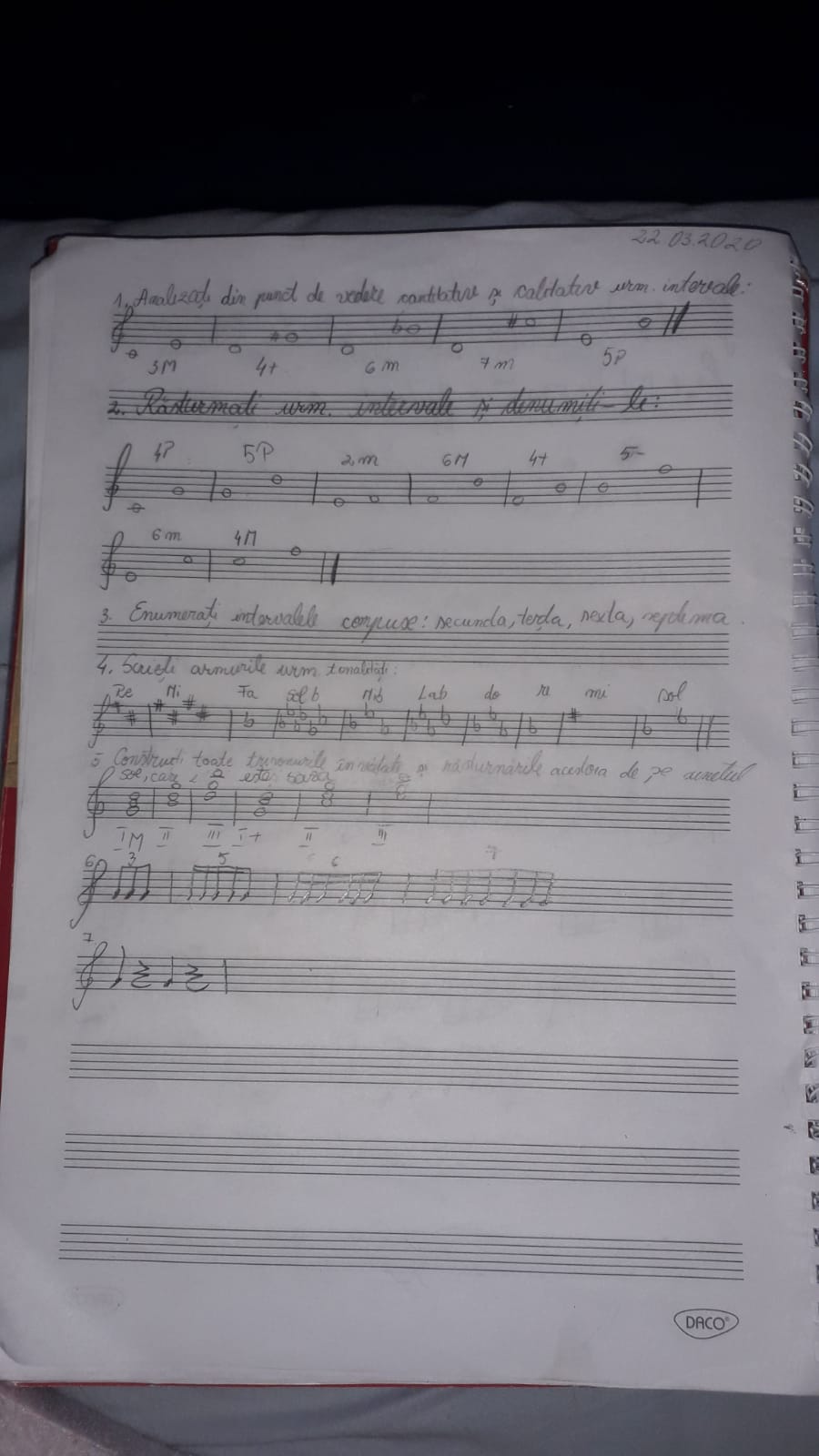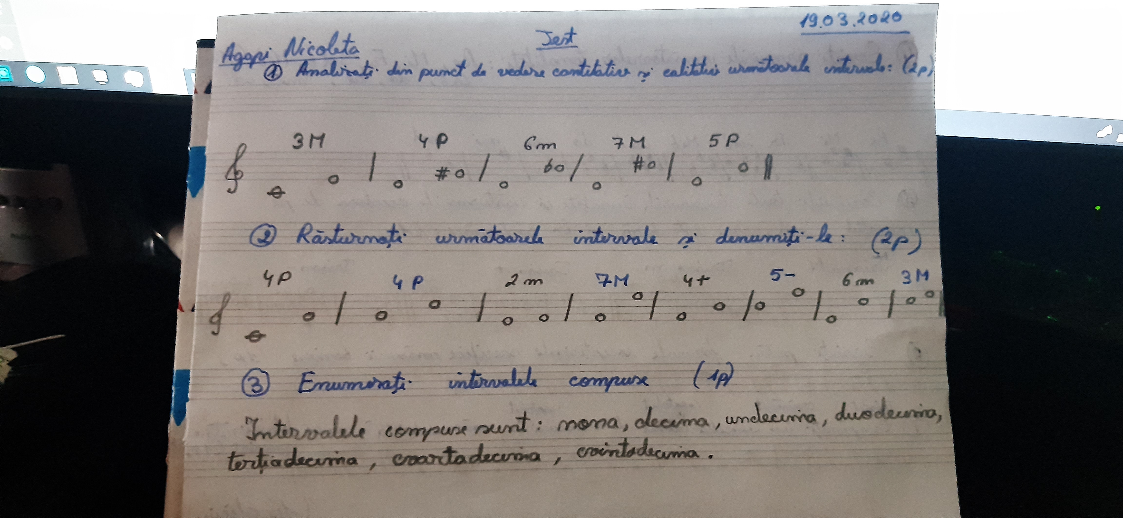*pieptea: bravo!!!!!!!!! esti singura care si-o adus aminte de ce am zis referitor la construirea trisonurilor, cand un sunet este baza de pe ala pornim si rasturnarile, nu il formam de pe un sunet si-l rasturnam apoi si singura care si-o adus aminte ca testul asta l-ati mai primit si trebuia corectat la ex 2 deasupra primului interval;